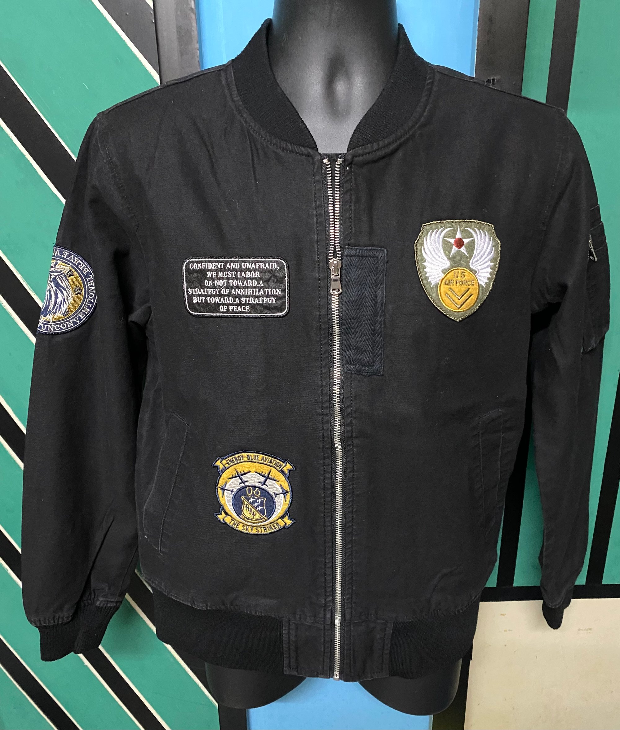 日本品牌Jungle Storm黑色全棉帆布bomber jacket