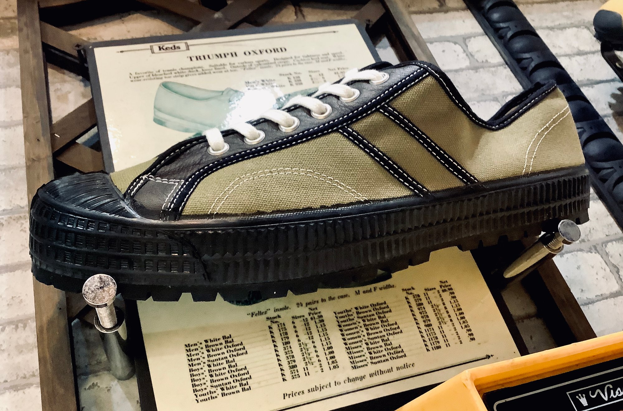 -上世紀40年代傳承古法,以高熱力將天然橡膠溶化連接往帆布面,此法使鞋外側非常耐用,摺曲位都不輕易爆開。