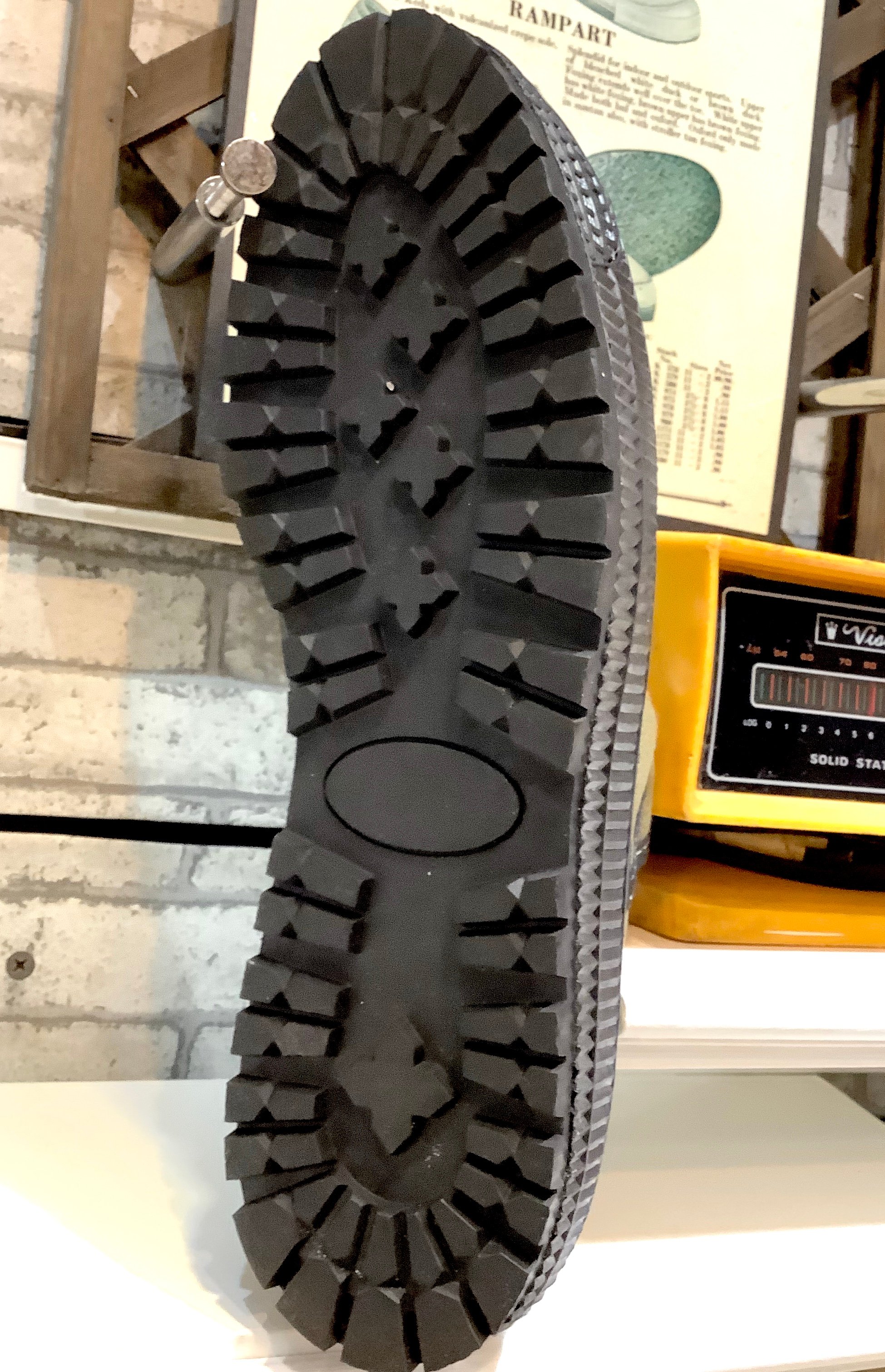 The natural rubber sole is machine-pressed by heat onto the body of the sole. This process results in the tire marks around outsole. This made the shoes more durable and won’t break easily.
