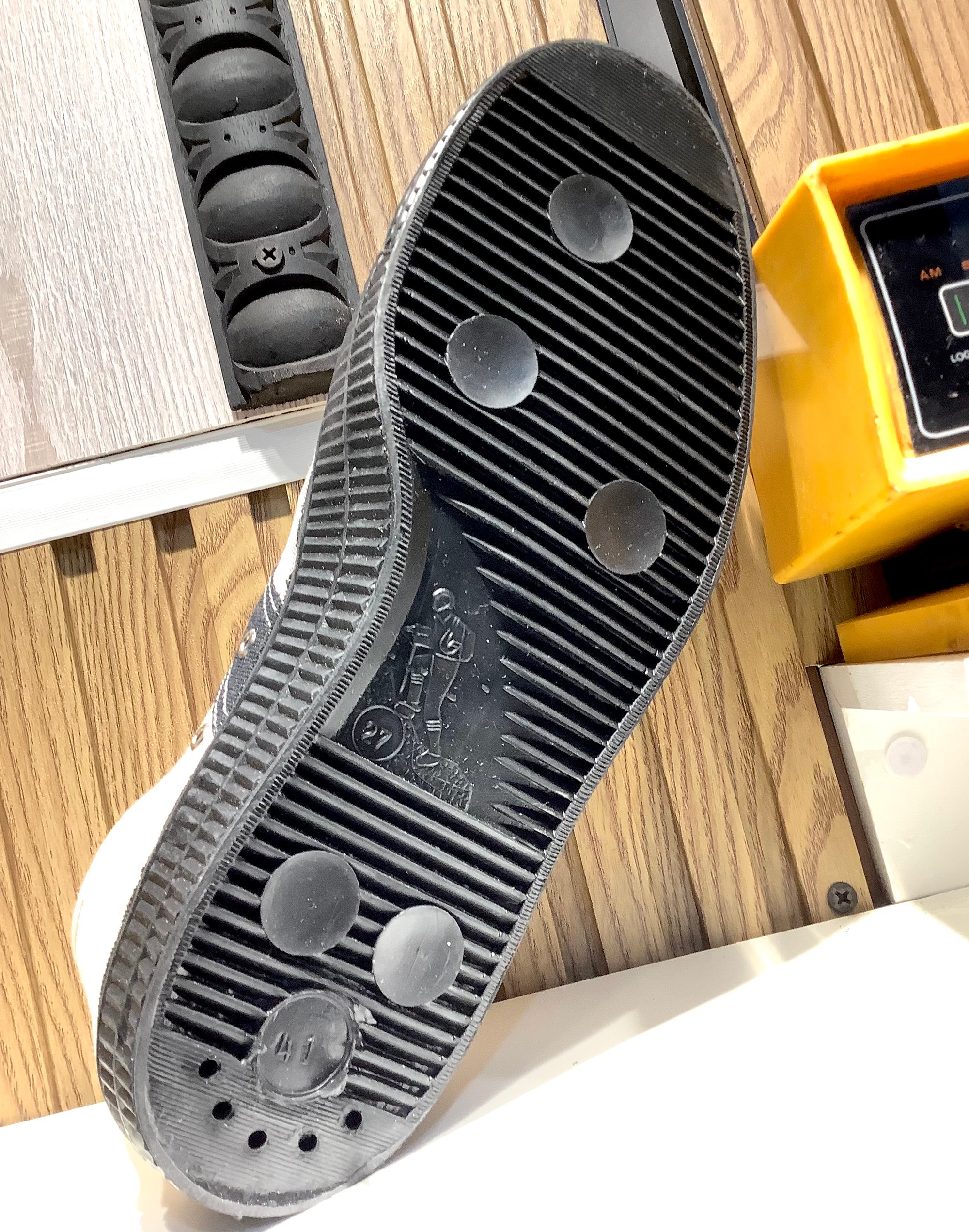 The natural rubber sole is machine-pressed by heat onto the body of the sole. This process results in the tire marks around outsole. This made the shoes more durable and won’t break easily.