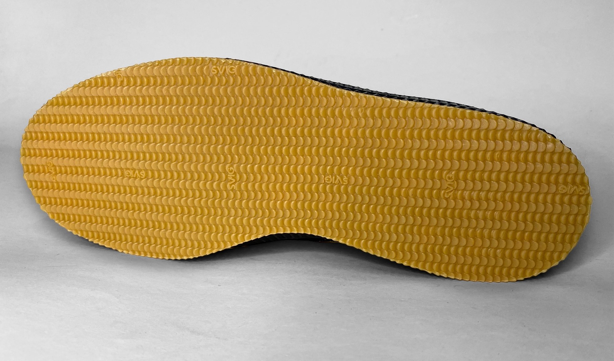 The natural rubber sole is machine-pressed by heat onto the body of the sole. This process results in the tire marks around outsole. This made the shoes more durable and won’t break easily.