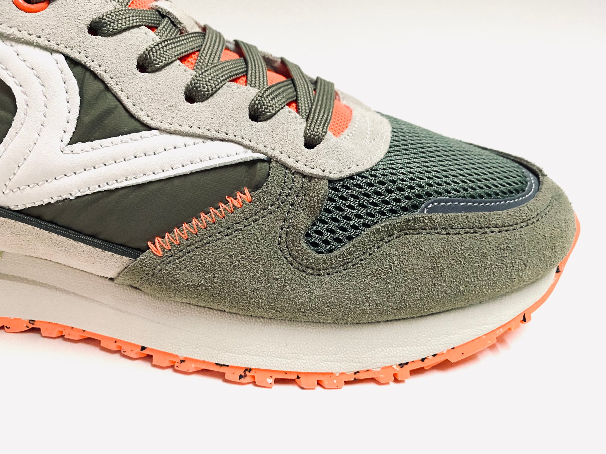 Olive cow suede + olive nylon upper .