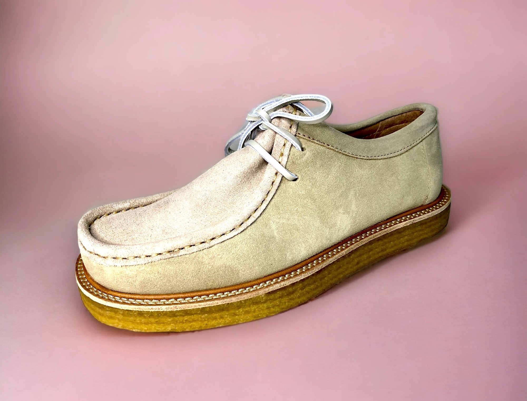 W. Bunch Wallabee light grey genuine cow suede shoes made in Spain.