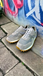 Genuine light grey full grain leather + cow suede +nylon fabric upper . Fashionable slim shoe shape. This shoe is produced by old Slovakian method and This made the shoes more durable.